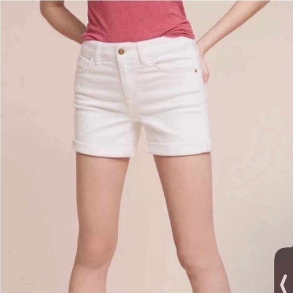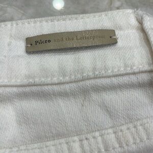 Pilcro & The Letterpress Script Micro Jean Shorts – Size 27 (US 4). Stay cool and stylish in these crisp white mid-rise denim shorts from Anthropologie. Flattering tailored fit with a clean, classic look—perfect for summer, beach days, or weekend wear. Easy to pair with tanks, tees, or flowy blouses. Excellent preowned condition – no stains, rips, or signs of wear.