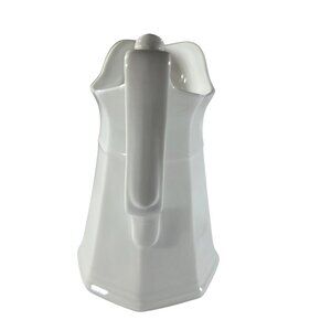 Crafted from fine porcelain, this white pitcher features a sleek, hexagonal design. Microwave and dishwasher safe, ensuring both style and practicality.