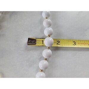 White Plastic And Gold Tone Metal Beaded Necklace Vintage Costume Jewelry, READ