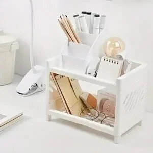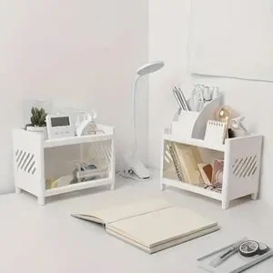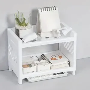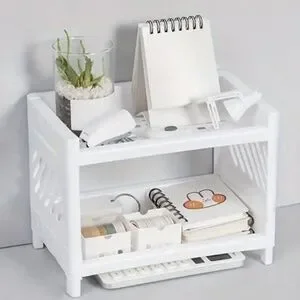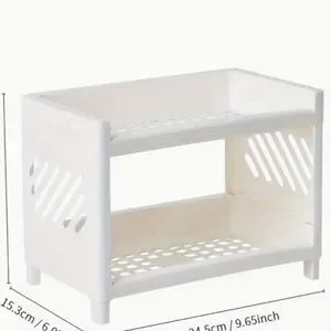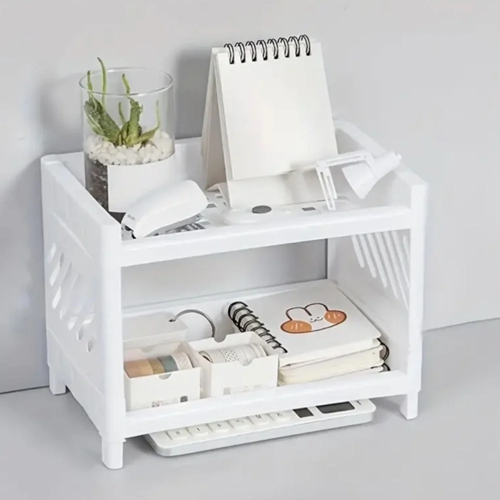 White Plastic Desktop Storage Rack -Multi-Functional Rectangular Organizer Shelf