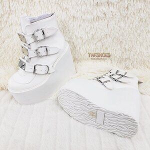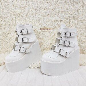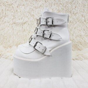 White Platform Wedge Goth Punk Ankle Boots Swing