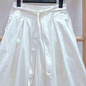White Pleated Midi Skirt with Waist Tie