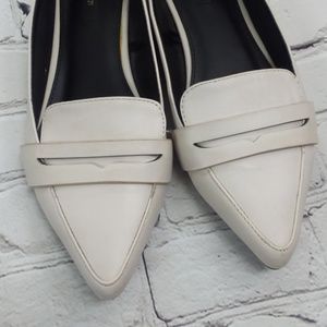 Forever 21 size 6.5 off white, ivory, cream color lloafer style flat shoes. Vegan faux leather.