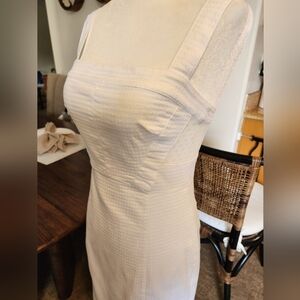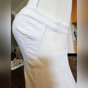 super cute flirty white tailored dress with poka dot with sexy sheer polka dot panel on the sides- beautifully tailored in excellent condition