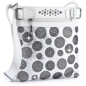 White Polka Dot Rhinestone Crossbody Sling Lightweight and Compact Handbag