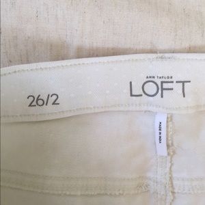 Worn only a few times. White shorts with subtle polka dots, light distressing, and frayed hem.