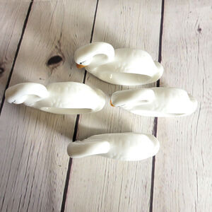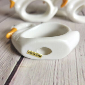 White Porcelain Ceramic Swan Napkin Ring Holder Orange Beak Curved Neck Set of 4