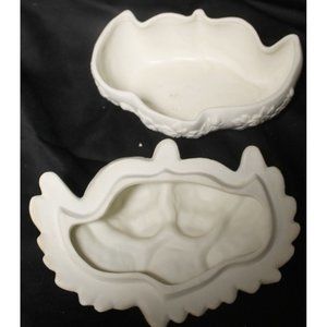 White Porcelain Cherub Angel Trinket Box Jewelry Baby Face Rose Gothic Victorian