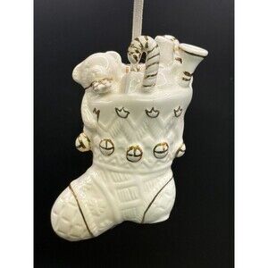 Add a touch of elegance to your Christmas tree with this beautiful White Porcelain Christmas Stocking Ornament. The ornament features a stunning gold accent that beautifully complements the white porcelain material. It is perfect for any Christmas occasion and is sure to become a cherished addition to your ornament collection.