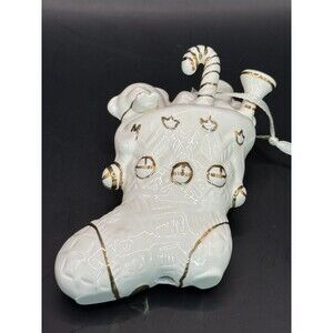 White Porcelain Christmas Stocking Ornament With Gold Accents