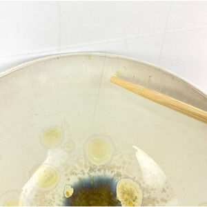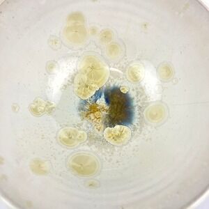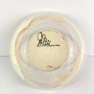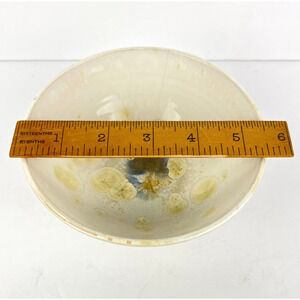 Beautiful crystalline glazed bowl measures approx 5.5" across and 2.5" high. Signed by artist. There is a hairline crack as pointed out in photo.