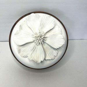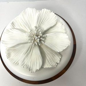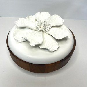 White Porcelain Magnolia Flower 3 D Wood Circular Box Keepsake Trinket Jewelry B