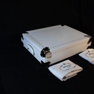 An exquisite hard-sided serving trunk meticulously crafted exclusively for Prada boutiques, making it an extraordinary addition to your collection. Unavailable for purchase in stores or online, this masterpiece ensures you stand out as one of the privileged few to possess it.