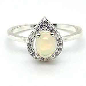 White Precious Opal .87ct Platinum Finish Solid 925 Sterling Silver Ring