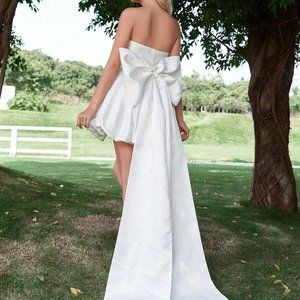 White Preppy Womens Big Bow Back Tube Wedding Dress