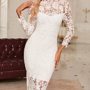 White Preppy Womens Guipure Lace Overlay Bodycon Dress