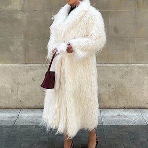 White Preppy Women's Plus Size Shaggy Faux Fur Long Coat