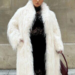 White Preppy Women's Plus Size Shaggy Faux Fur Long Coat