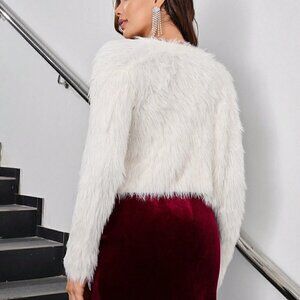 White Preppy Womens Solid Open Front Fluffy Knit Cardigan