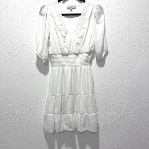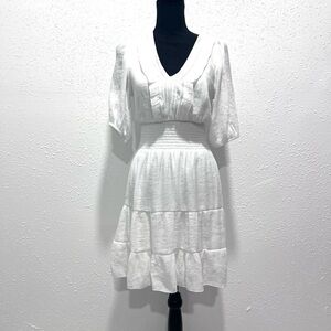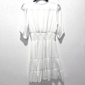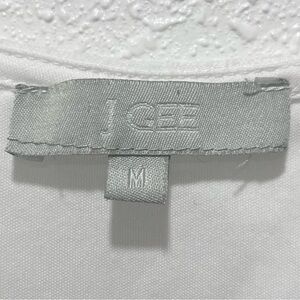 The pre-owned J. Gee dress is a short, solid white garment that features several distinctive characteristics: