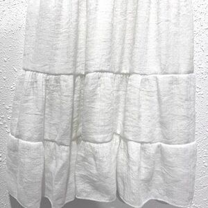 - The skirt is tiered, with multiple horizontal seams that create distinct layers, adding volume and a flowy appearance.