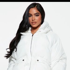 Fashion Nova, white puffer jacket, size M, used once.