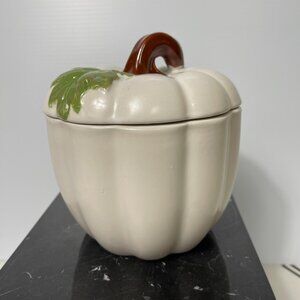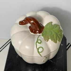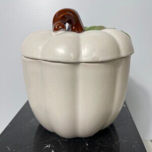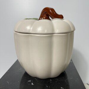 White Pumpkin Ceramic Cookie Jar, Candy Jar, Canister Fall Theme Or Halloween