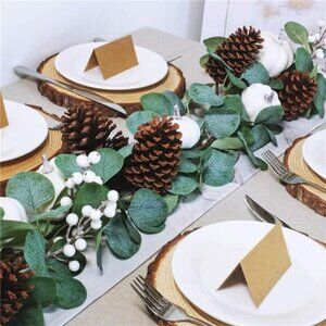 🧿Quantity: Package includes 6' long Artificial Silver Dollar Eucalyptus Leaves Garland with white pumpkins, pinecones and berries. Each White Pumpkin Garland has a loop at one of the ends for easy hanging.