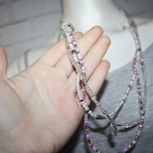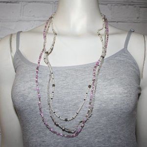 🤍💜 White, Purple + Silver Beaded Layered Necklace · 32" 💜🤍
