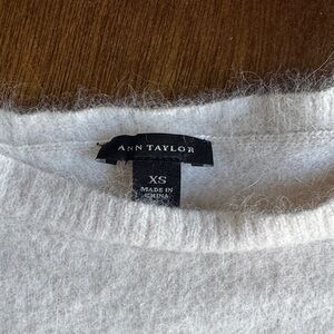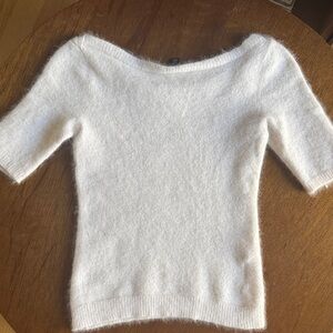 Luxurious and soft crew neck sweater. Made of rabbit fur and nylon. Fits like a true XS. Color is slightly off-white.🐇🌸