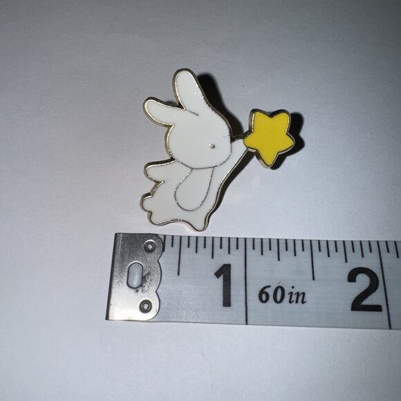 White Rabbit Holding Star Pin Brooch