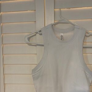 White Racer Back Ribbed Tank Top (Built in bra)