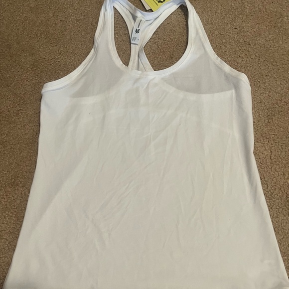 Stay cool and stylish with this white racerback tank top. Perfect for workouts or casual wear.