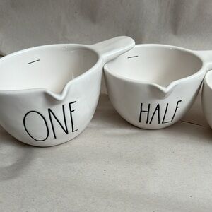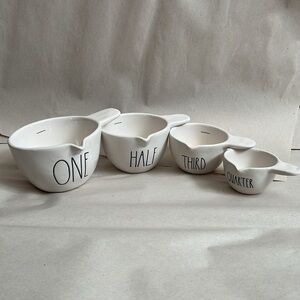 White Rae dunn handled measuring cups