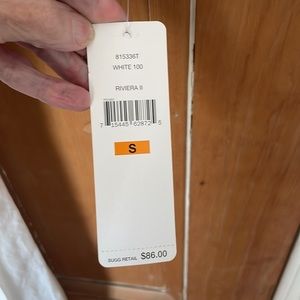 Never worn- tag still on it! 55% linen; 45% cotton. White with navy blue trim and insignia