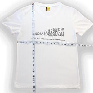 Sized Woman’s Small, Amazing Condition. V neck collar. White Blank with cool screen printed design