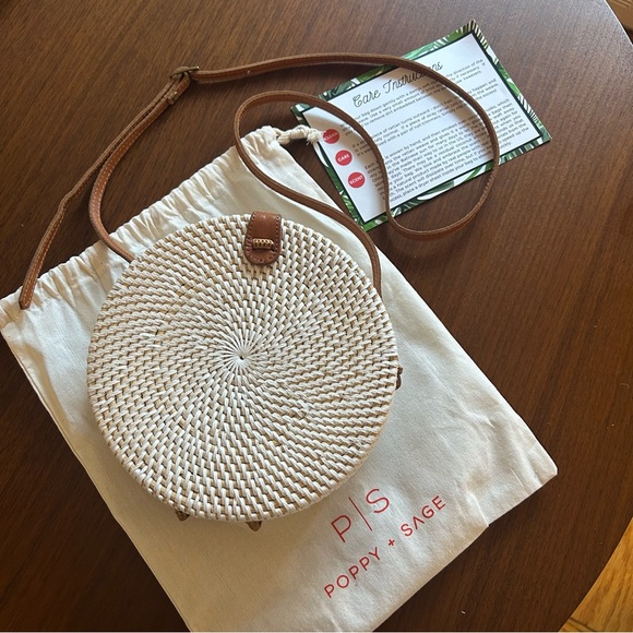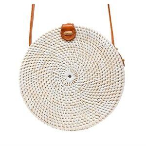 White Rattan Round Bag