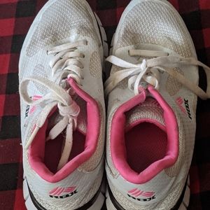White and pink Rbx shoes used and worn in certain areas but in good condition