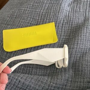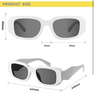 Stylish white rectangular sunglasses with dark lenses. Perfect for a chic look.