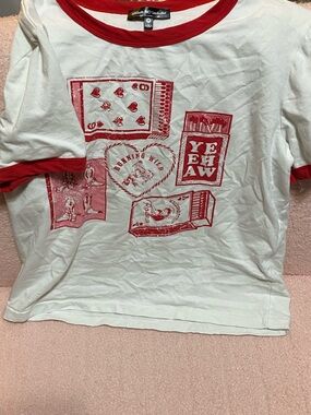 White & Red Graphic Ringer Tee