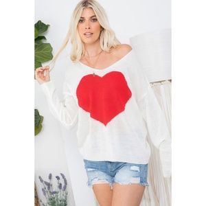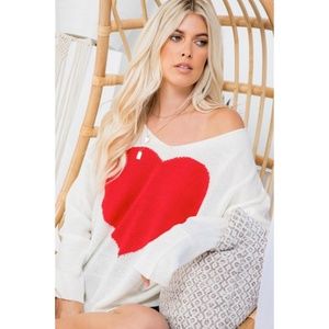 Featuring our Sweetheart Sweater perfect for Valentines Day in white featuring a large red heart.
