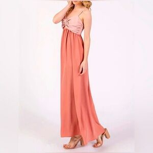 This elegant pink color block maxi dress is perfect for any occasion. Its flowing design offers both comfort and style. This color blocked sleeveless dress featuring a v-neckline, a ruched bust, a front cutout, adjustable cami straps and a smocked back.