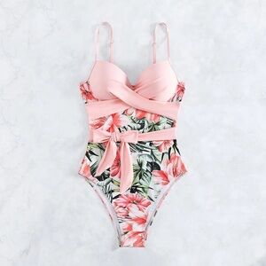 This charming floral print swimsuit is perfect for fun in the sun. Designed with comfort and style in mind, it features a delightful floral pattern with a tie belt that you will love.