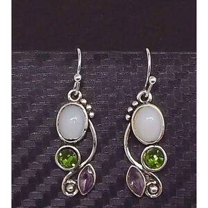 White Resin Green Peridot Purple Amethyst Silver Earrings French Wires Drop