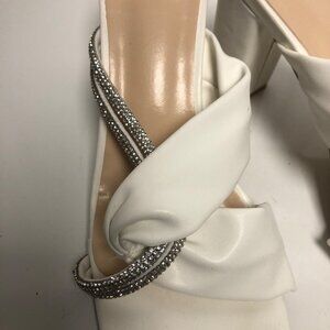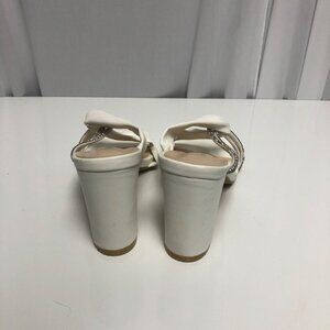 White Rhinestone Embellished Square Toe Heeled Sandals Womens Sz 8 Elegant Shoes