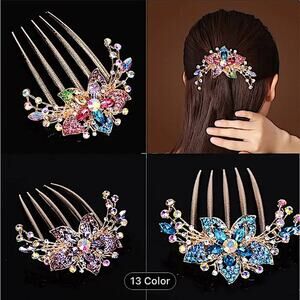 White Rhinestone Flower Hairpin Comb Wedding Anniversary Party Banqu…