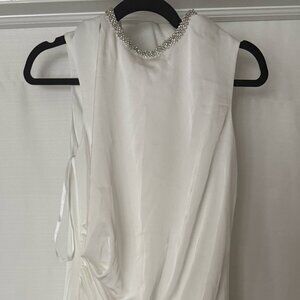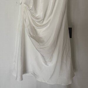 White Rhinestone Neckline Draped Mini Dress Womens Gown Mac Duggal