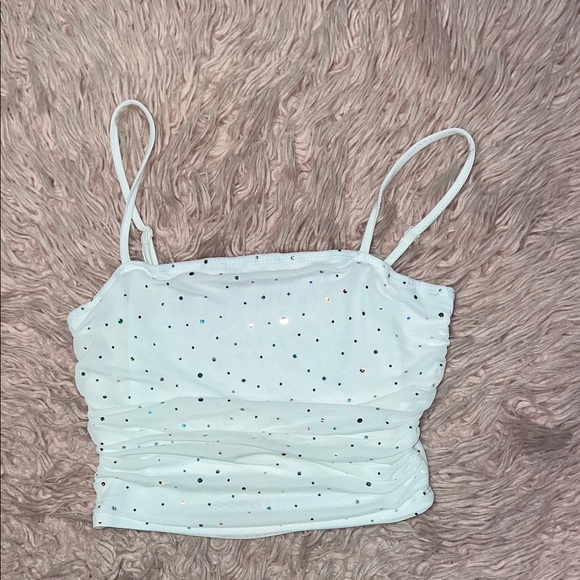 Super cute white crop top with subtle rhinestone sparkle ✨