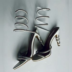 White Rhinestone Strappy Heels ✨ size 6.5✨ brand new without tags✨ dress up your next ootd with these beautiful heels✨ heel height 4in✨