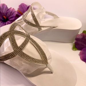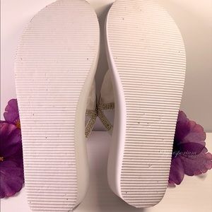 Never too early to think spring/summer! Sparkle and shine in casual wear, at the pool, or sandy beach. These pretty slippers were used once for a Miami Beach shoot. Lite wear on bottom, but otherwise in fabulous condition. Stored in 🚭and 🦮🐈-free home.